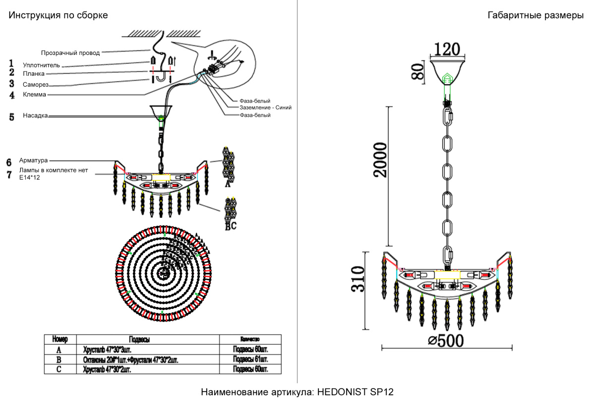 Цвет подвесок Прозрачный
