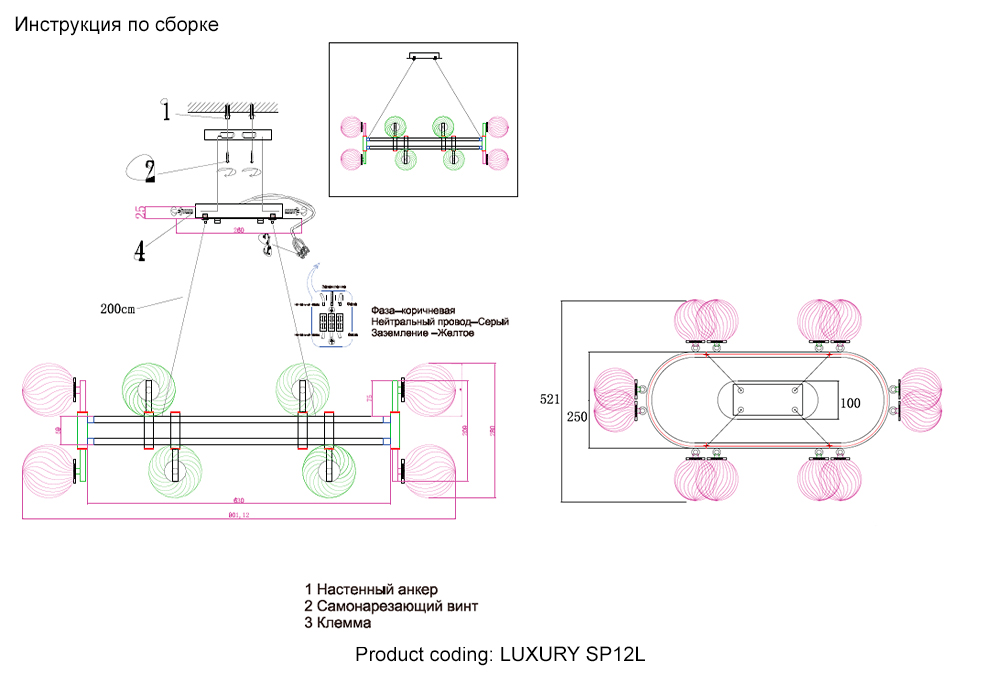 Длина подвеса, мм 2000