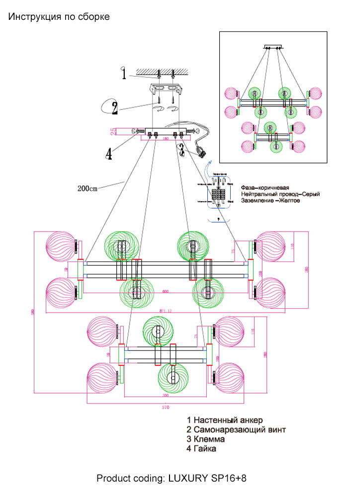 Длина подвеса, мм 2000