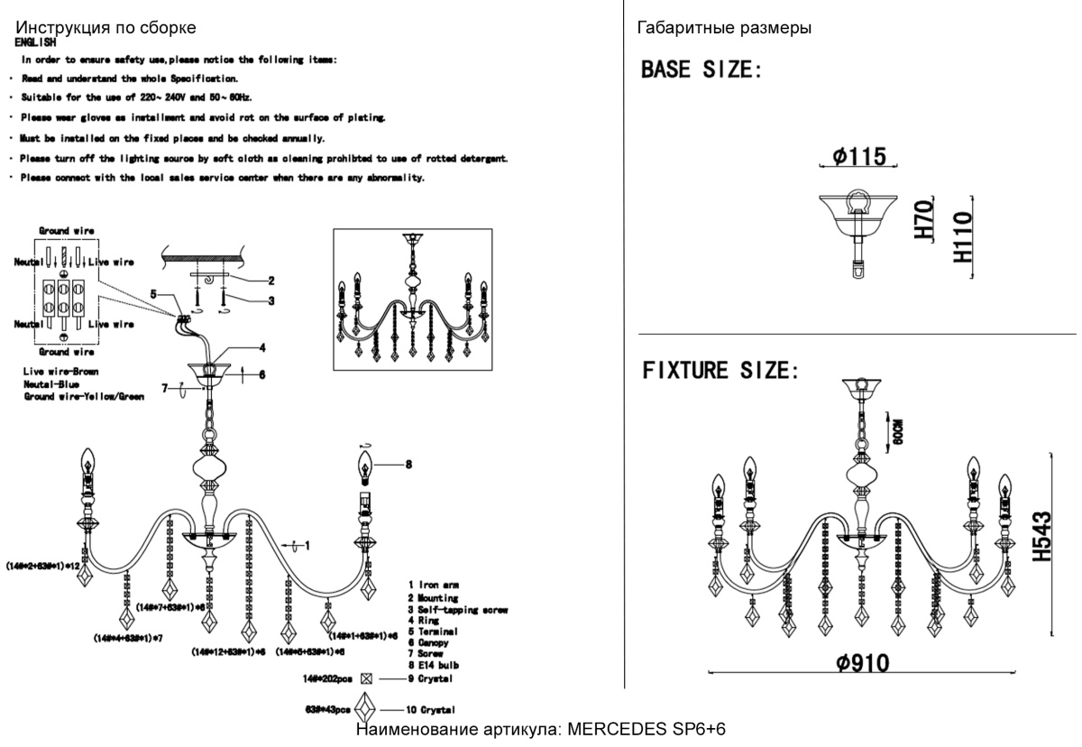 Люстра Crystal Lux MERCEDES SP6+6 CHROME/SMOKE