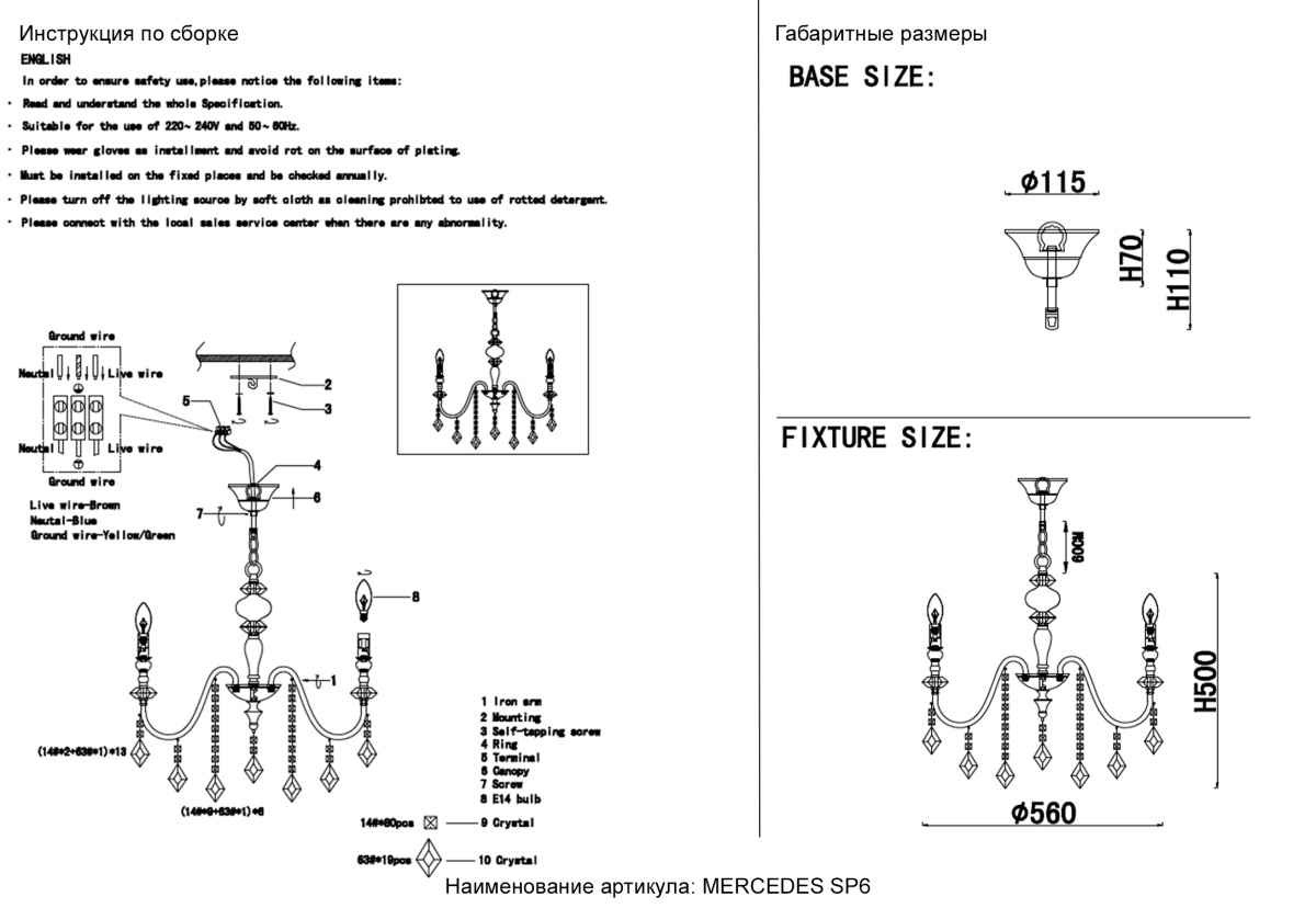 Люстра Crystal Lux MERCEDES SP6 CHROME/SMOKE