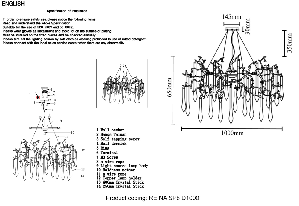 Длина подвеса, мм 350