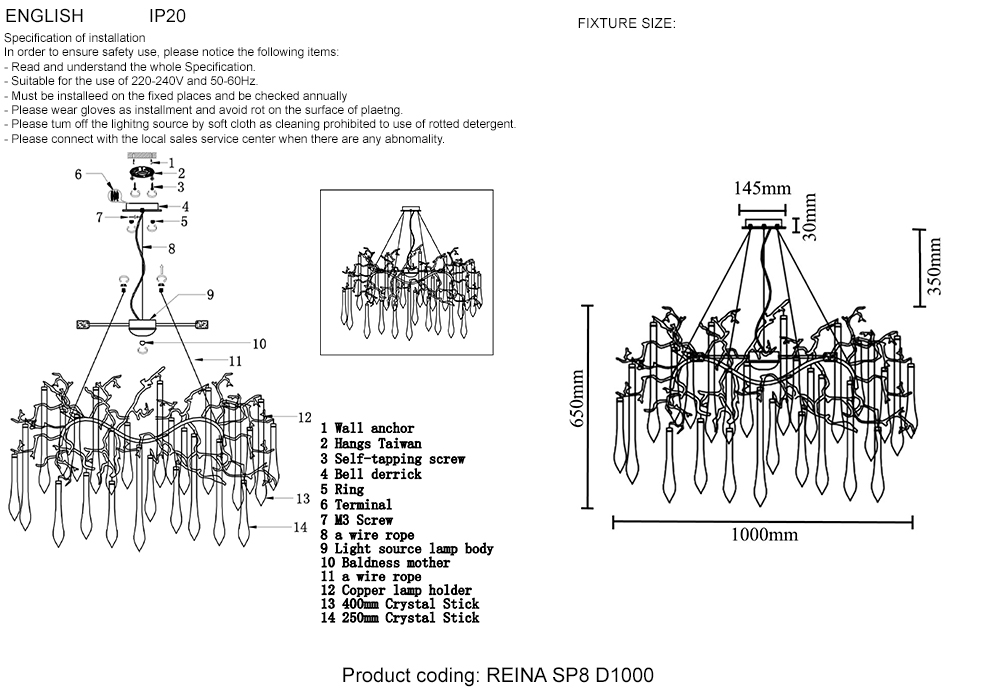 Люстра Crystal Lux REINA SP8 D1000 SILVER PATINA