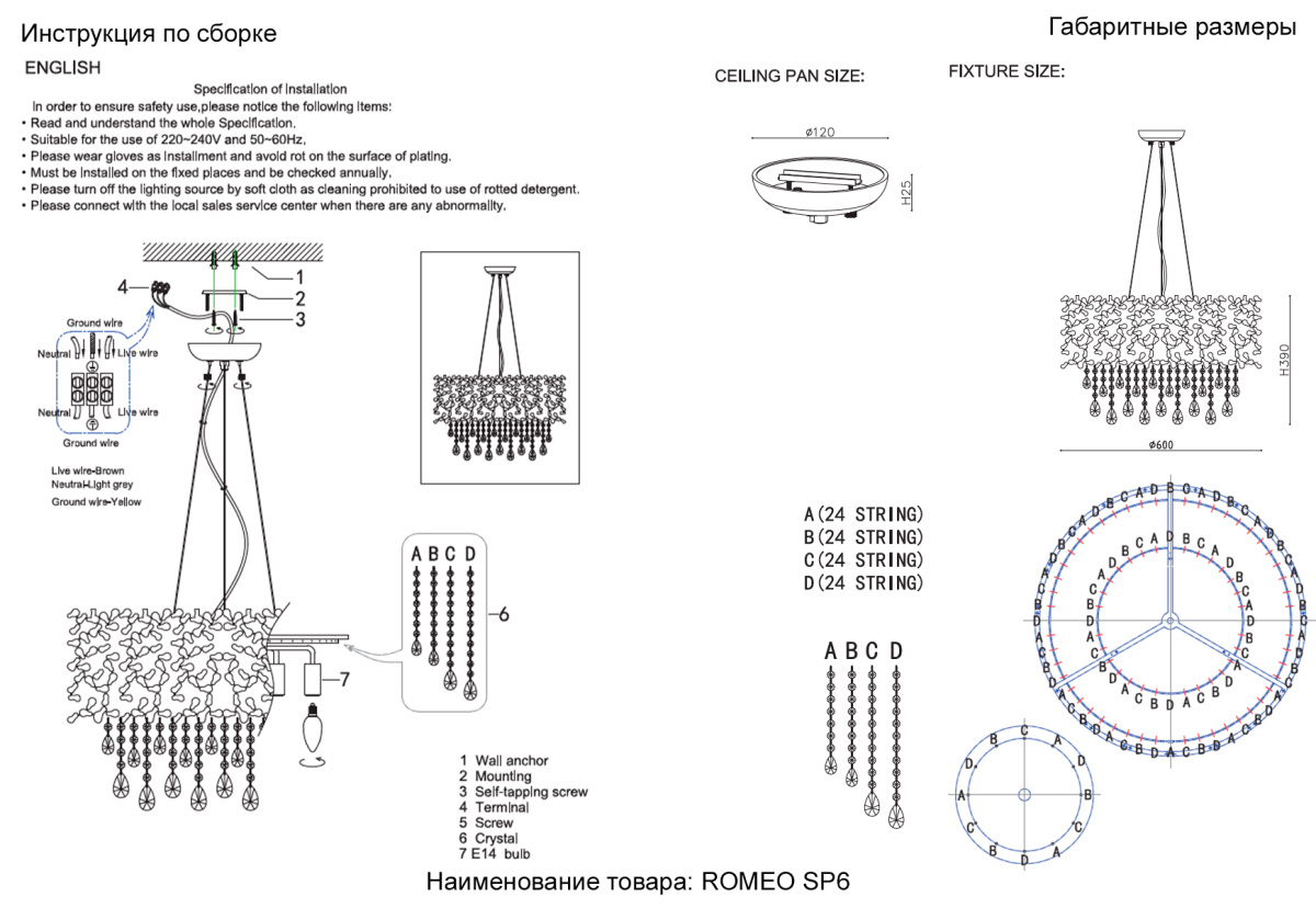 Люстра Crystal Lux ROMEO SP6 CHROME D600