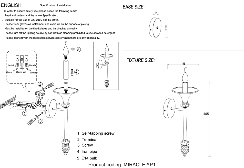 Бра Crystal Lux MIRACLE AP1 CHROME