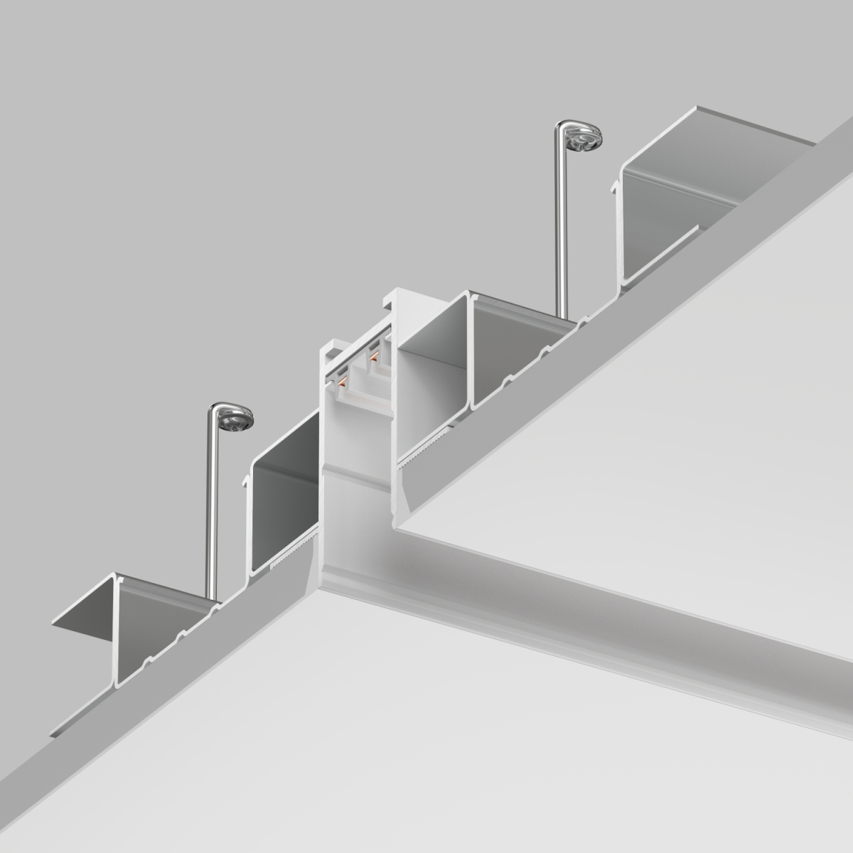 Специализированный трек, предназначенный для встраиваемого монтажа в потолки и стены из гипсокартона. Имеет фланцы-упоры по всей длине, благодаря которым надежно фиксируется в материале потолка либо стены В комплекте две торцевые заглушки. Нарезается на отрезки любой длины.Трек системы SMART для встраиваемого монтажа в гипсокартон. Имеет специальные фланцы-упоры по всей площади, благодаря которым надежно фиксируется в материале подвесного потолка методом скрытого монтажа. Является лучшим решением для встраиваемого монтажа в гипсокартон. Торцевые заглушки идут в комплекте. Дополнительные аксессуары: подвод питания, соединительные элементы и декоративные экраны приобретаются отдельно. Шинопровод подключается к сетевому напряжению AC 220V. Драйвер и трансформатор не требуются.