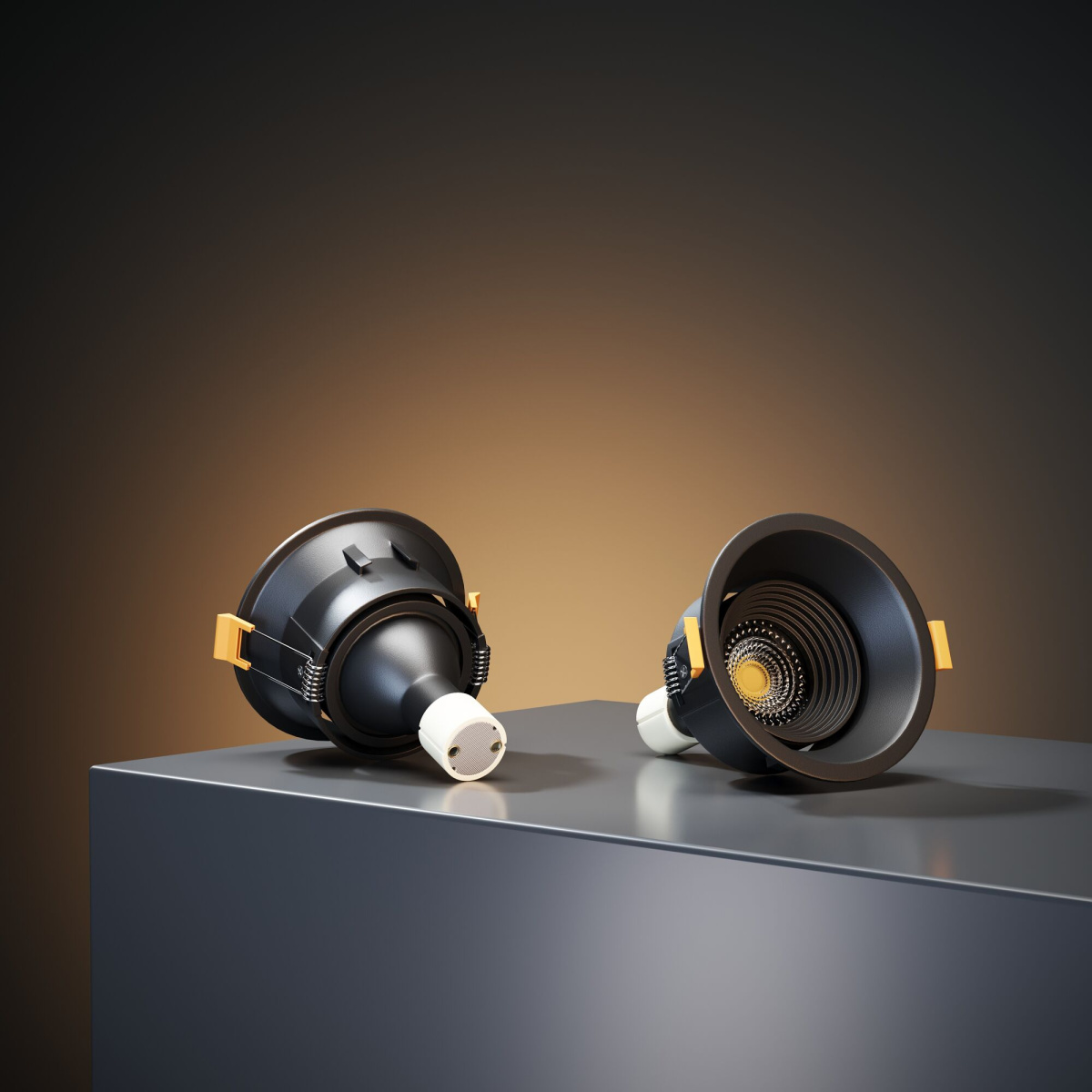 В производстве точечного светильника использовали высококачественный алюминиевый сплав с надежным защитным покрытием и закаленное стекло. Благодаря простой конструкции эргономичный  светильник легко устанавливается на любые типы поверхностей.