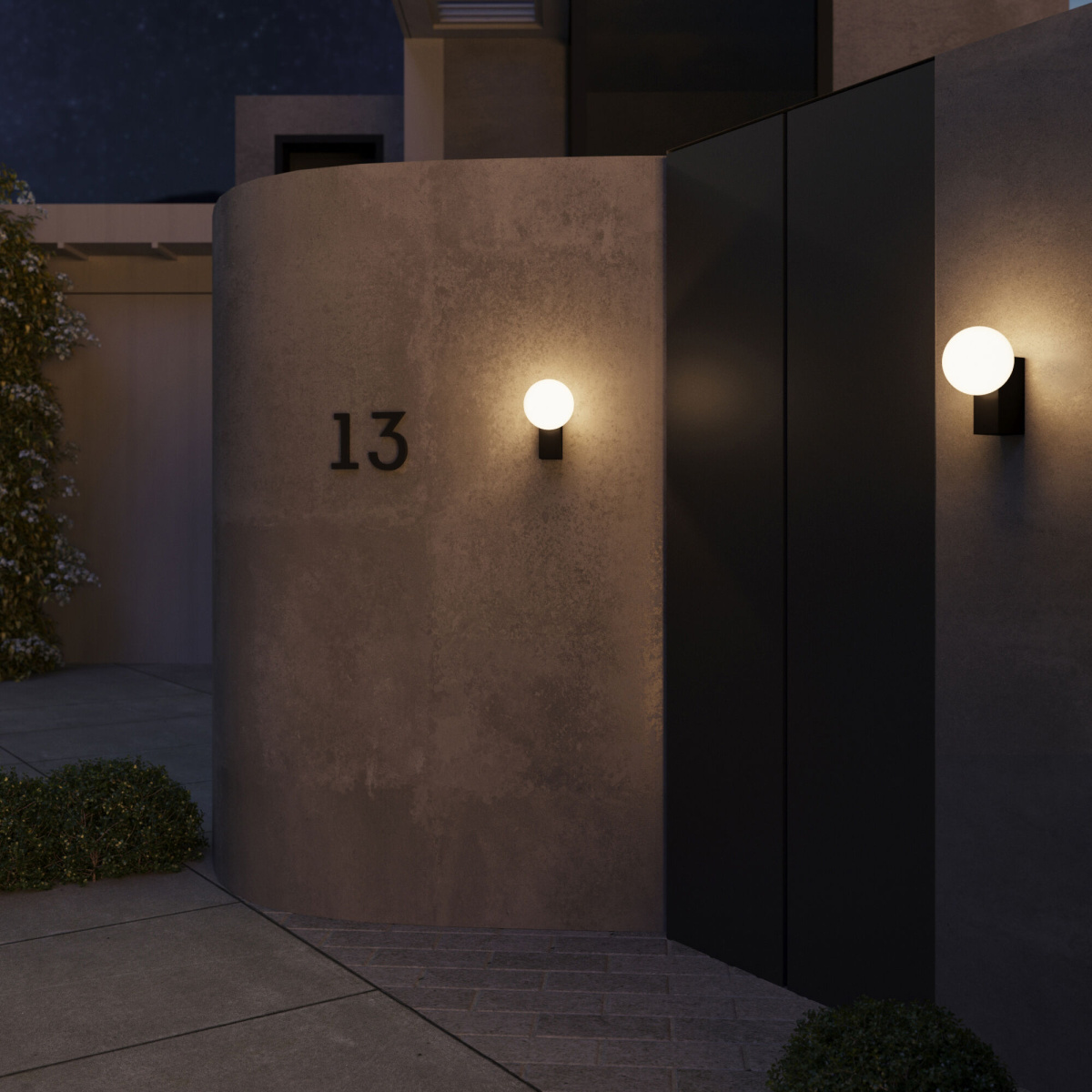 Уличный настенный светильник Gravity – это воплощение баланса геометрических форм и минимализма. Белый плафон из матового стекла обеспечивает мягкое распределение светового потока. В качестве источника света используются сменные лампы с цоколем Е14 мощностью до 40 Вт.