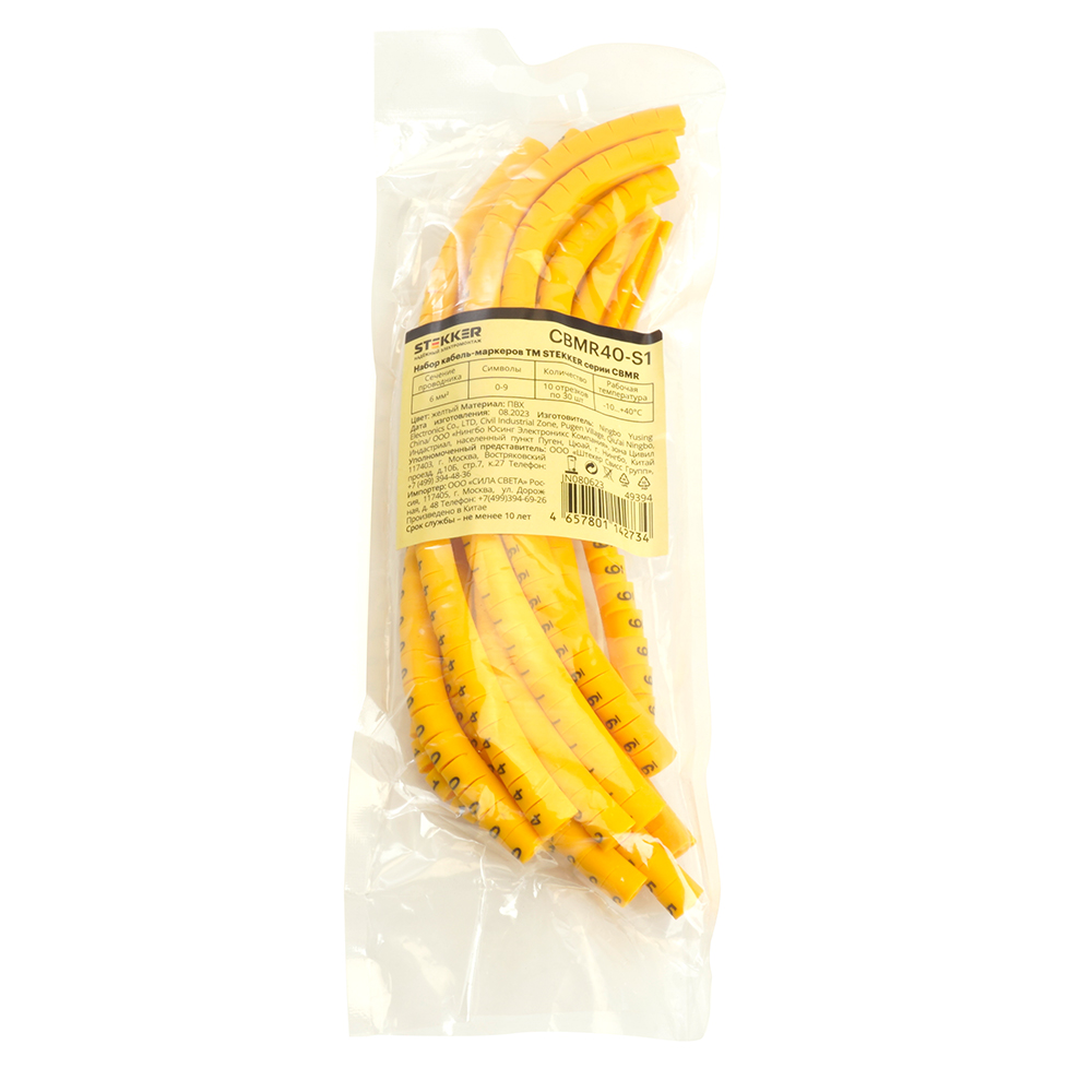 Набор кабель-маркеров DIY электромонтажный STEKKER CBMR40-S1, , желтый, материал - ПВХ, размер 15*98мм, максимальный диаметр пучка - мм, нагрузка - кг, диапазон рабочих температур -10°C - +40°C, рекомендуемая температура хранениня