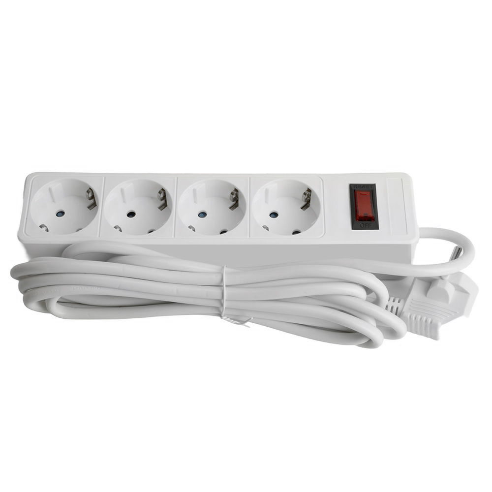HM20-41-05 Сетевой фильтр 4-местный с/з 3x1мм2, 5 м, 230В, 13А, серия Optima, белый
