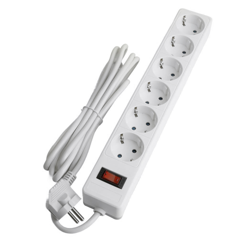 Сетевой фильтр 6-местный с/з STEKKER HM20-61-02 3x1мм2, 1,8 м, серия Optima, белый