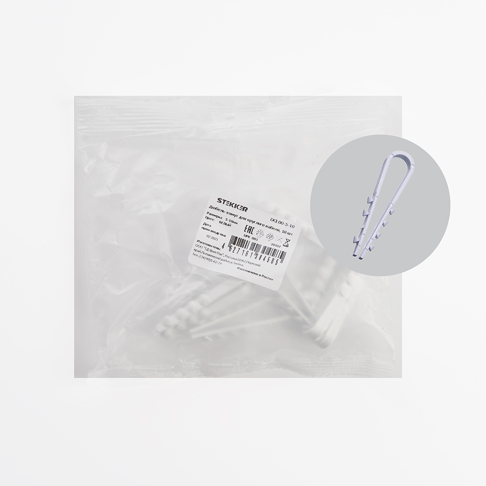 Дюбель-хомут для круглого кабеля (5-10мм), STEKKER DCL00-5-10, полипропилен, белый, (DIY упаковка 10шт.