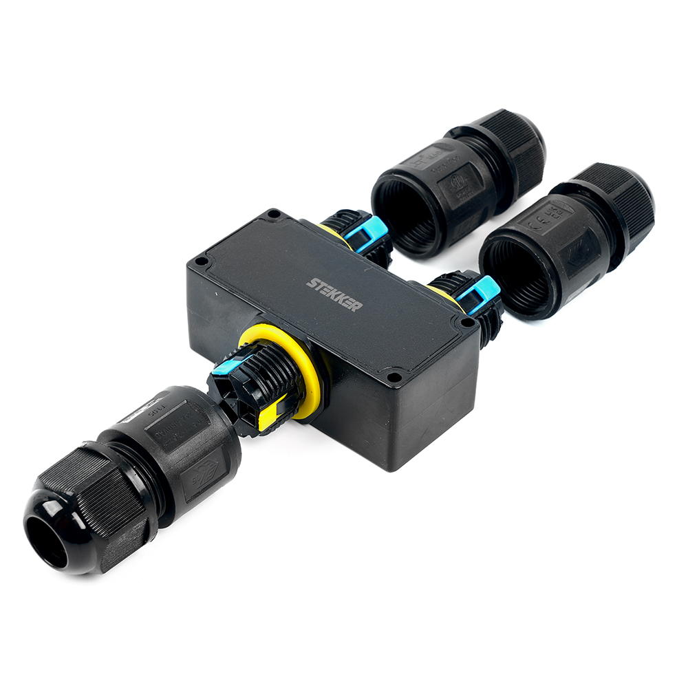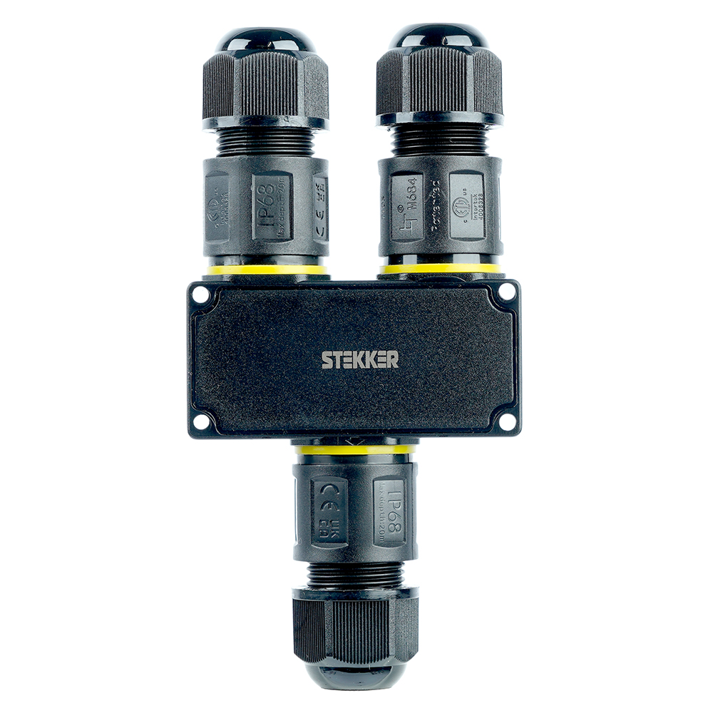 Распределительная коробка STEKKER LD555, количество вводов: 3, поликарбонат, нейлон, цвет черный, размер 128.3*65.9*25.4мм.
