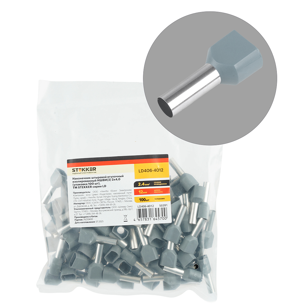 LD406-4012 Наконечник штыревой втулочный изолированный НШВИ(2) 4,0-12 (упаковка 100 шт)