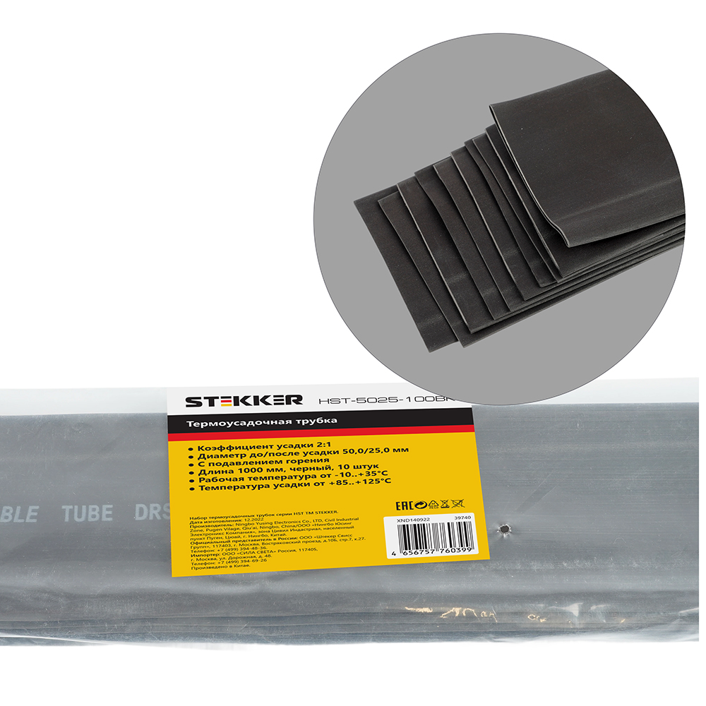 Термоусадочная трубка STEKKER HST-5025-100BK, длина 100 см., коэф. усадки 2:1, черный