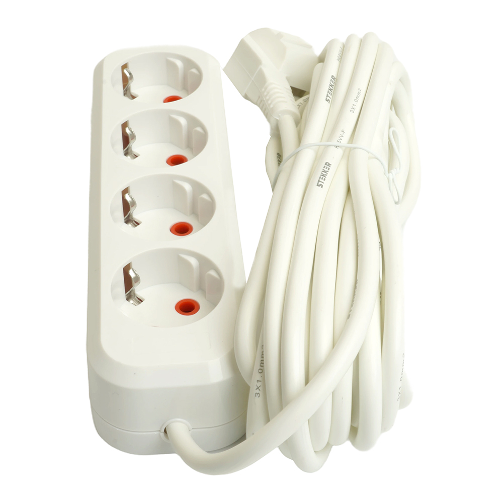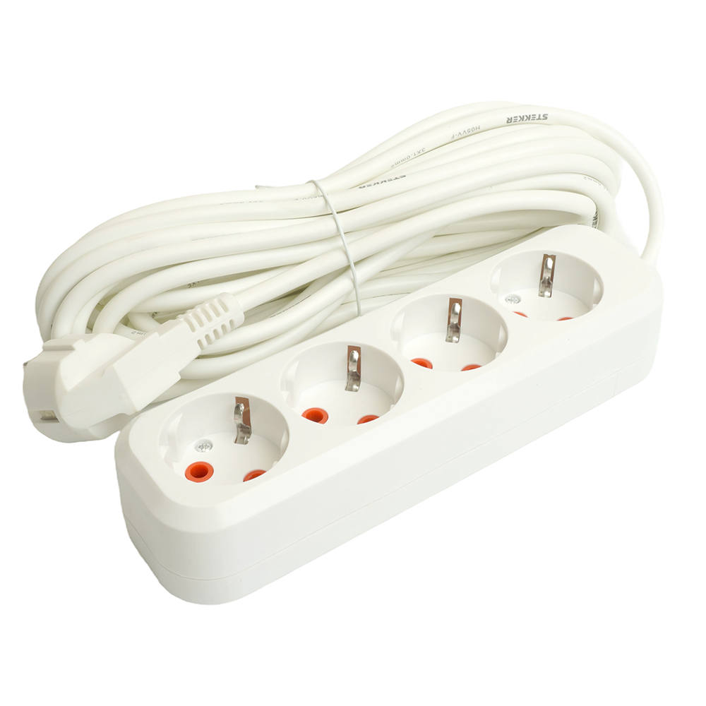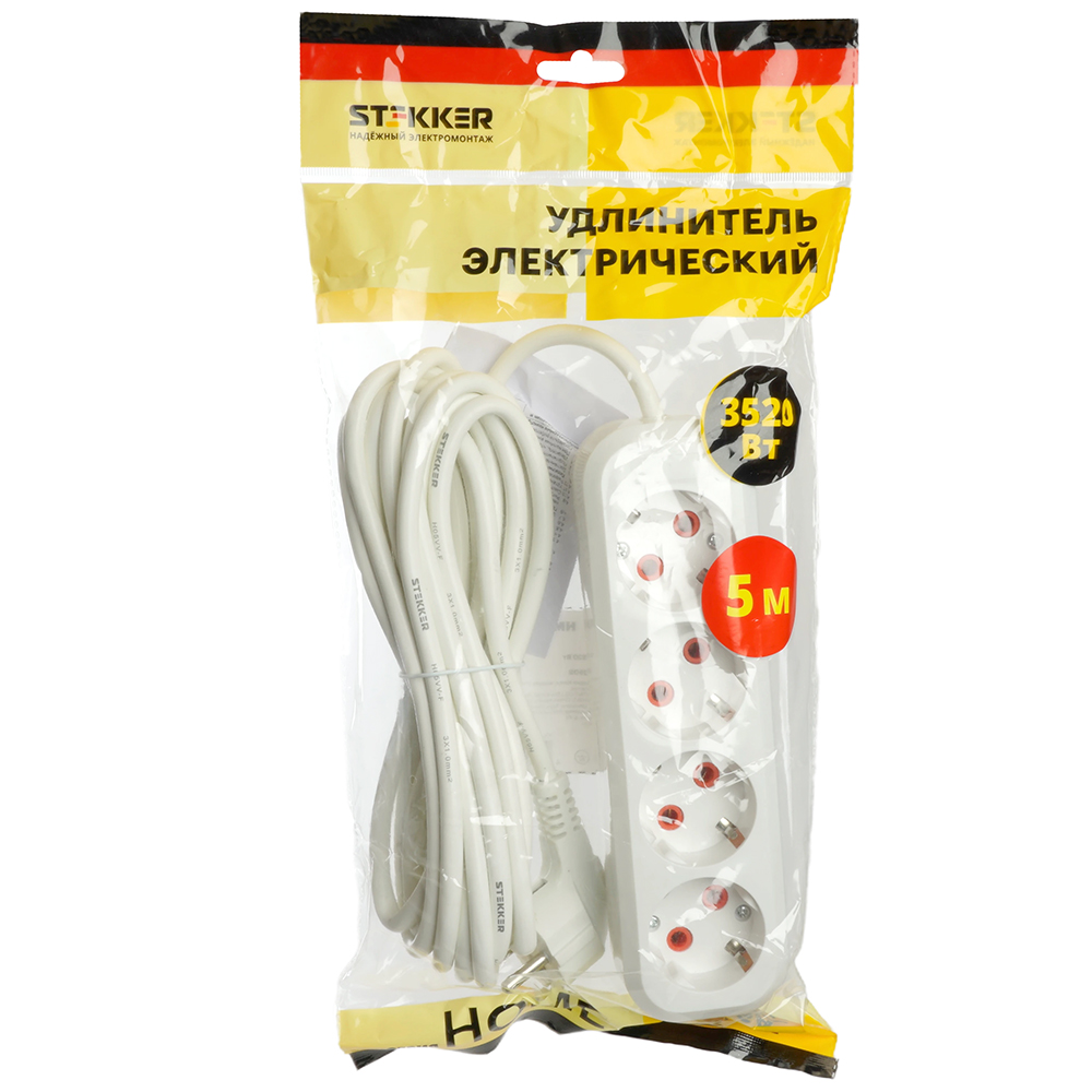 Удлинитель четырехместный c/з STEKKER HM06-40-05 3x1мм2, 5м, серия Home (У10-429), белый