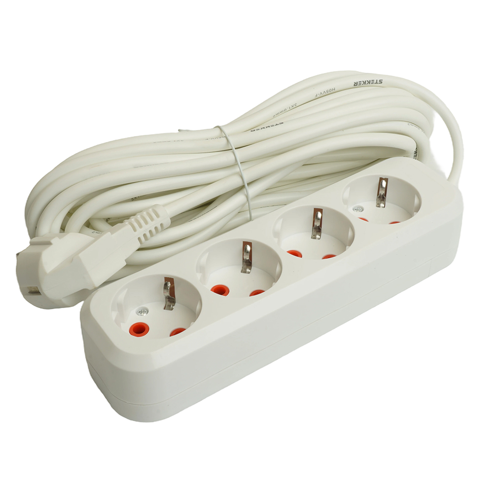 Удлинитель четырехместный c/з STEKKER HM06-40-07 3x1мм2, 7м, серия Home (У10-429), белый