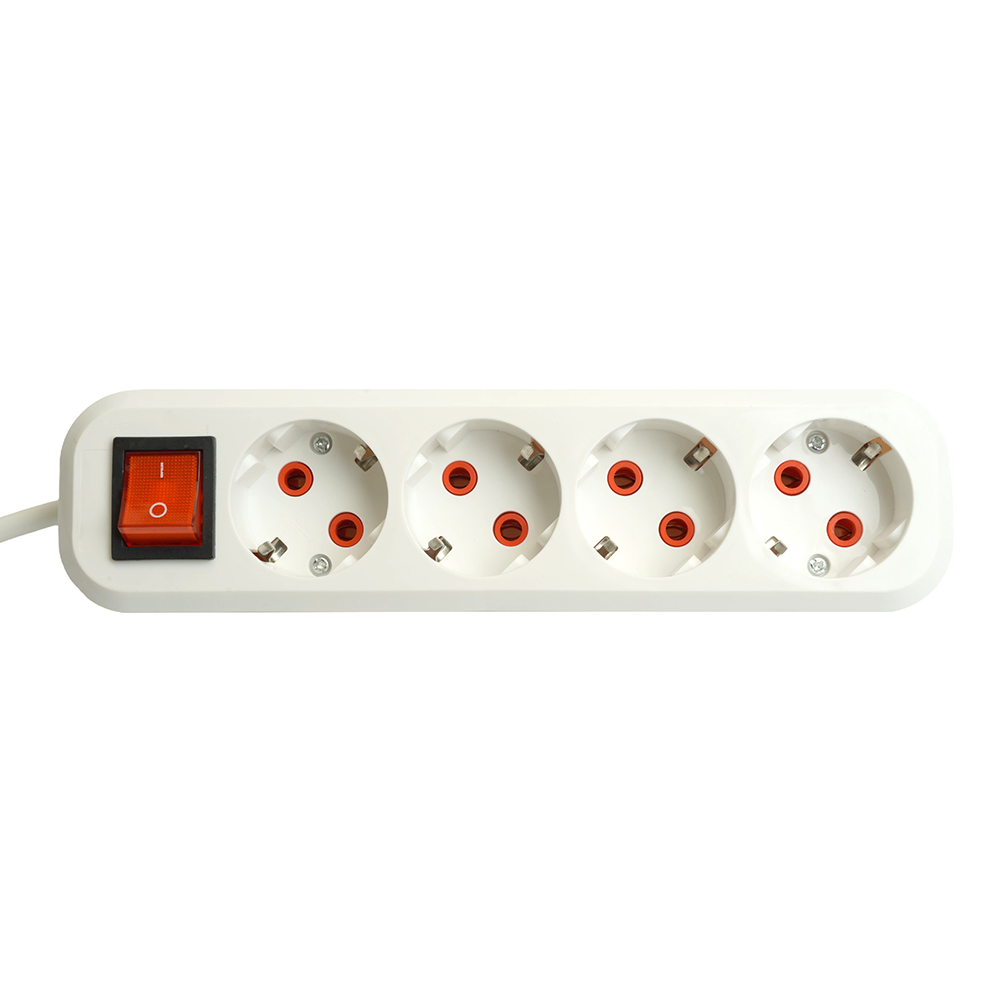 Удлинитель четырехместный с/з с выключ. STEKKER HM07-41-02 3x1мм2, 2м, серия Home (У16А-003), белый