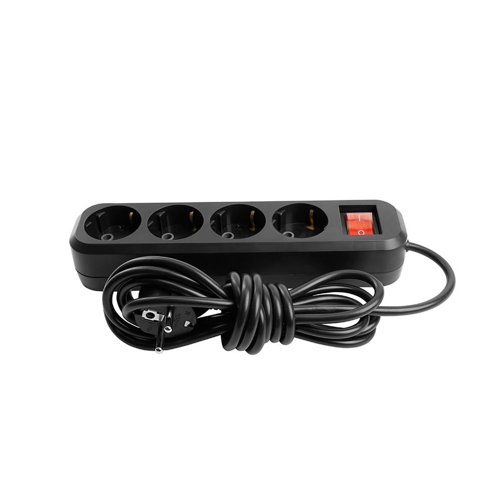 Удлинитель четырехместный с/з с выключателем STEKKER HM03-41-02 3x0,75, 2м, серия Home (У10А-003), черный