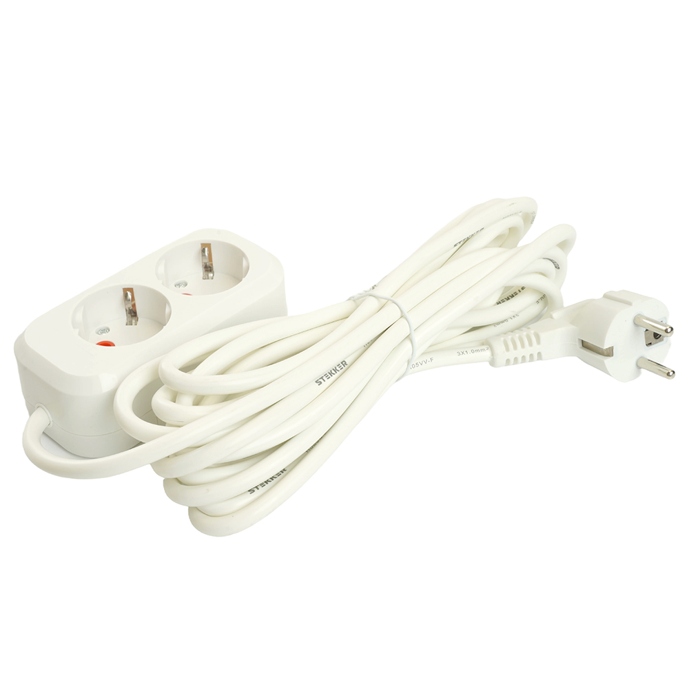 Удлинитель двухместный с/з STEKKER HM06-21-05 3x1мм2, 5м, серия Home (У10-001), белый