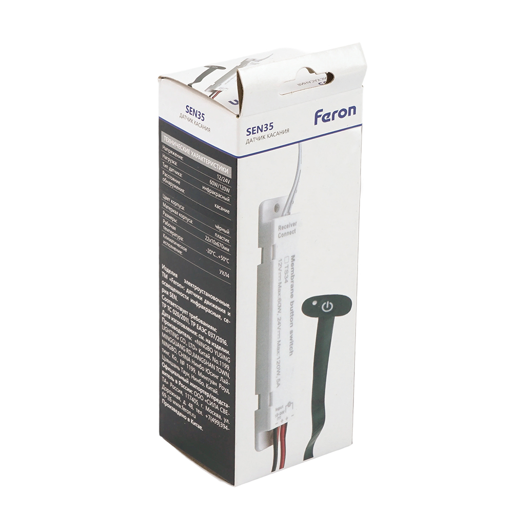 Датчик движения FERON SEN35 на касание, встраиваемый, IP20, 12/24V, 60/120W, расстояние обнаружения касание, угол обнаружения 180°, цвет чёрный, 22*10*670мм
