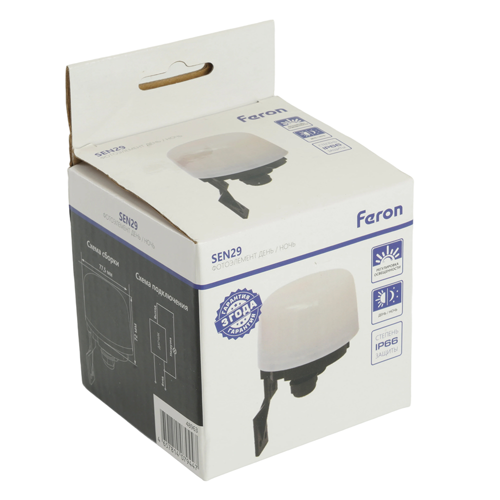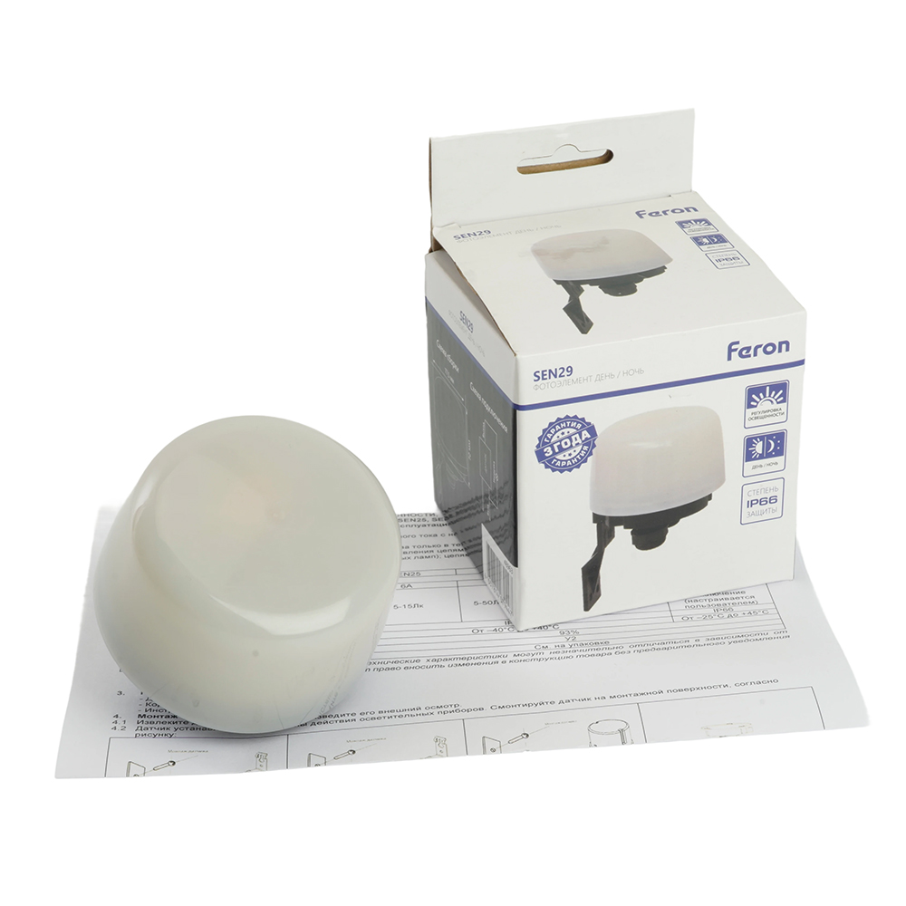 Датчик освещенности FERON SEN29 фотоэлемент, накладной, IP66, 230V, 2200, с регулировкой освещенности, цвет белый, 72*77,5*114мм