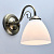 Основание светильника выполнено из металла и гальванизировано в цвет античной бронзы. Светильник декорирован стеклянным плафоном белого цвета.