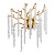 Основание подвесной люстры выполнено по технологии художественного литья из сплава алюминия с цинком и гальванизировано в цвет золота. Люстра декорирована гроздьями из прозрачного хрусталя.