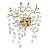 Основание настенного бра выполнено по технологии художественного литья из сплава алюминия с цинком и гальванизировано в цвет золота. Настенное бра декорировано подвесками из прозрачного хрусталя.