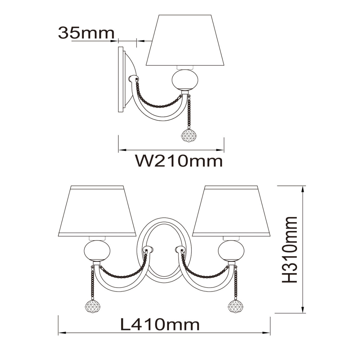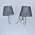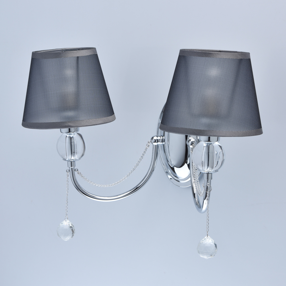 Основание светильника выполнено из металла и гальванизировано в цвет хрома. Рожки выполнены по технологии проката на роликовом станке. Розетки выполнены из прозрачного акрила в виде шара. Двойные плафоны: выполнены из органзы графитового цвета, с атласным кантом серого цвета и с термостойким акрилом с внутренней стороны, прошиты.Декор: цепочки гальванизированы в цвет арматуры, подвески декорированы прозрачными хрустальными шарами.