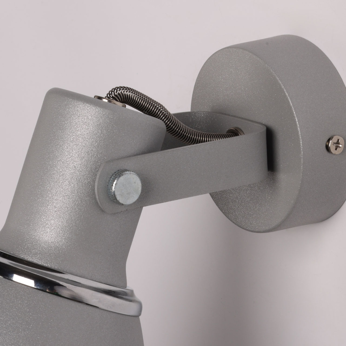 Металлическое основание настенного бра окрашено в светло-серый цвет. Отдельные элементы бра гальванизированы в цвет хрома.