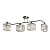 Металлическое основание потолочной люстры окрашено в черный цвет. Отдельные элементы основания гальванизированы в цвет хрома. Плафоны декорированы прозрачным стеклом прямоугольной формы.