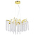 Основание подвесной люстры выполнено по технологии художественного литья из сплава алюминия с цинком и гальванизировано в цвет золота. Люстра декорирована гроздьями из прозрачного хрусталя. Потолочная чаша декорирована фактурной чеканкой.