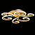 Металлическое основание потолочной люстры окрашено в цвет перламутрового золота. Корпус плафонов выполнен из сплава алюминия с цинком и окрашен в цвет основания. Светодиодные источники света закрыты белым матовым акрилом.