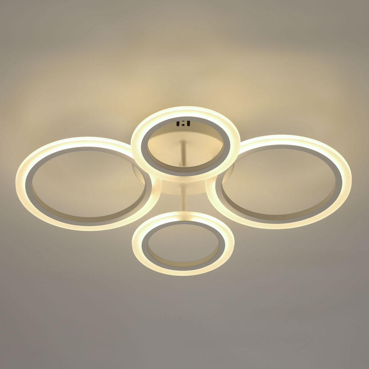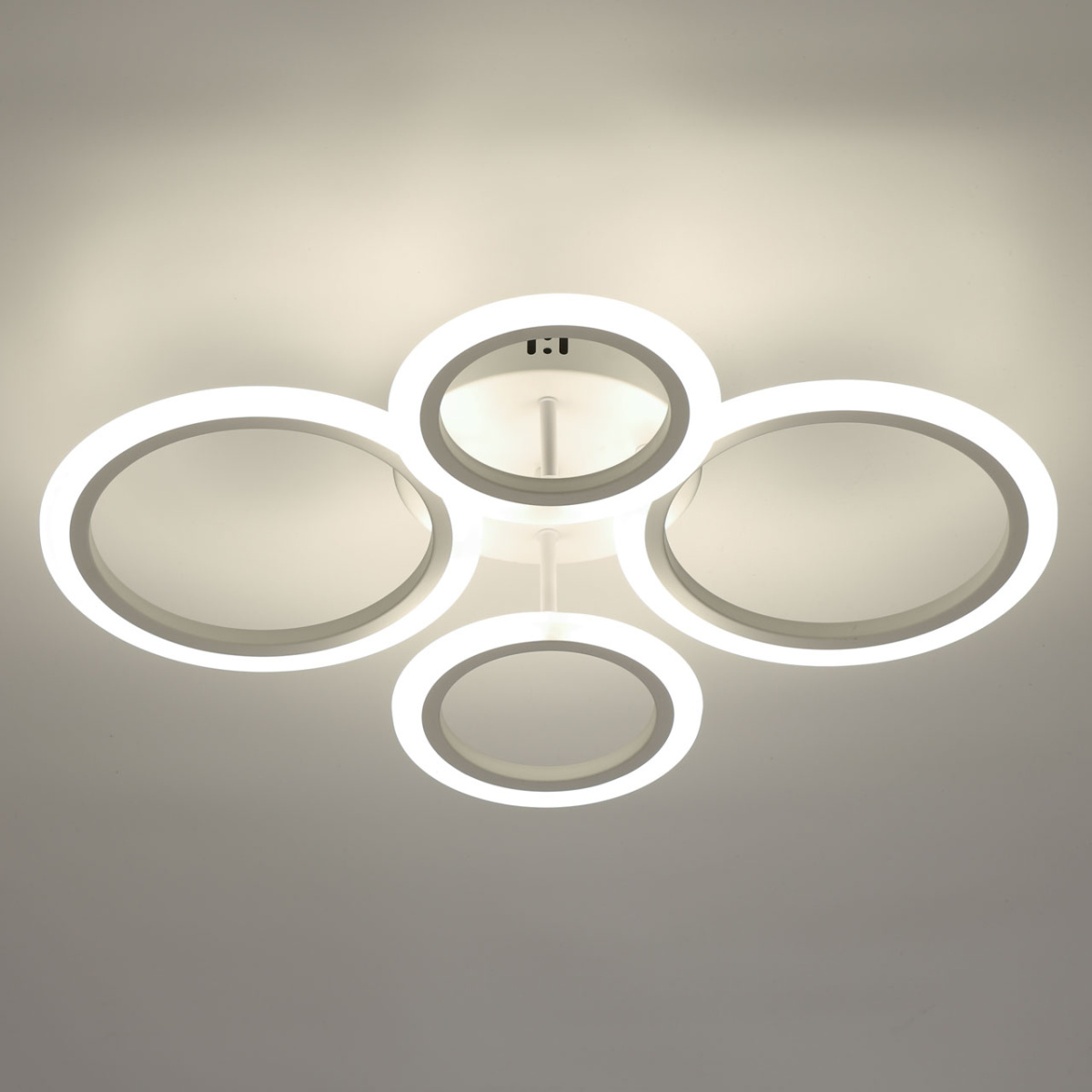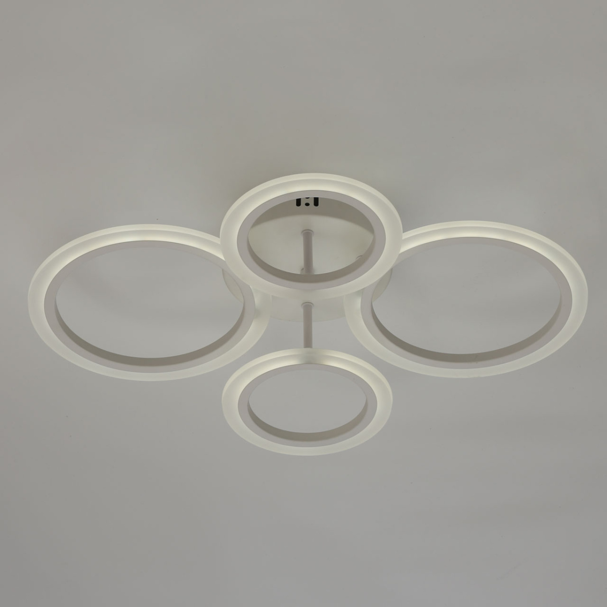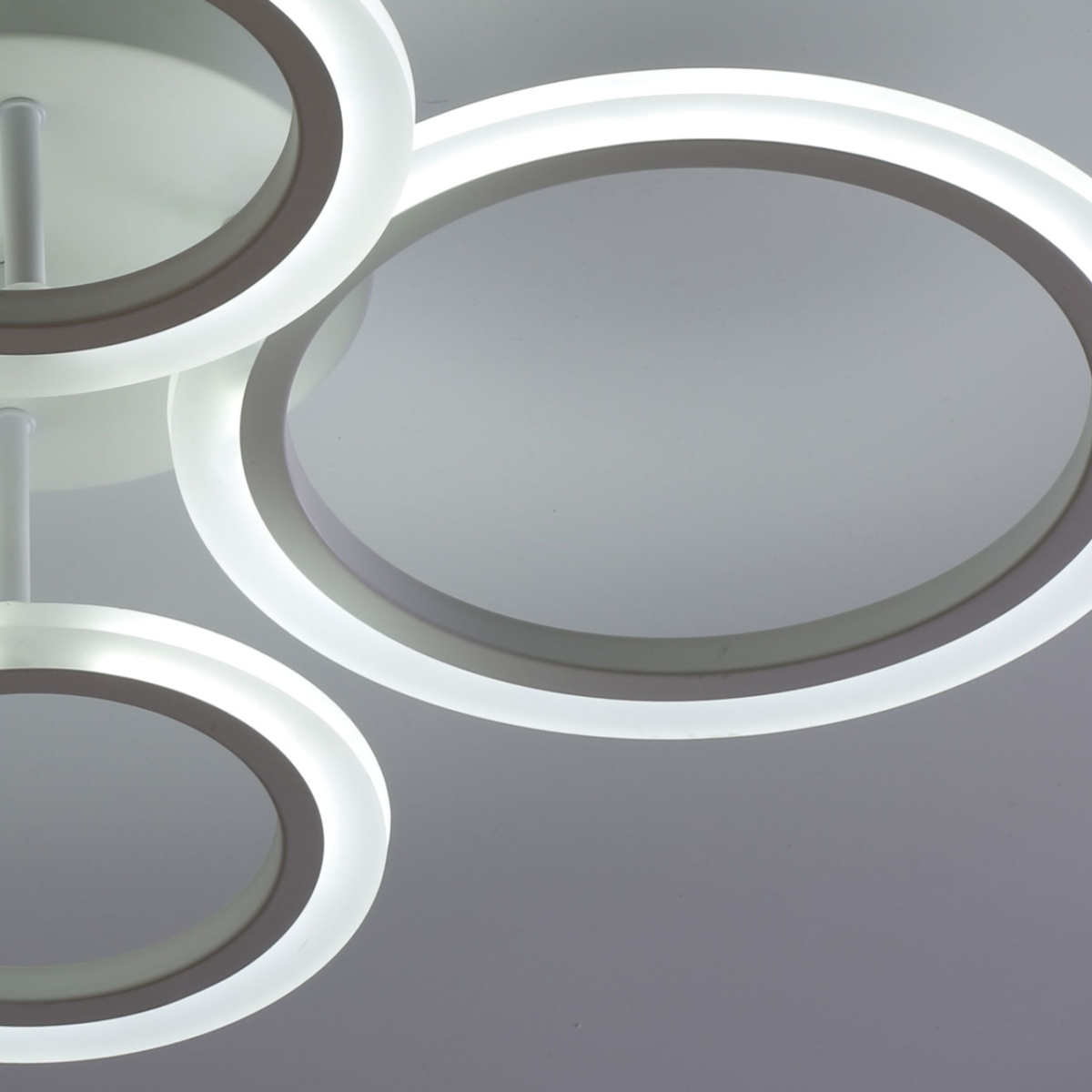 Металлическое основание светильника окрашено в белый цвет. Каркас плафона выполнен из сплава алюминия с цинком и окрашен в цвет основания. Светодиодные источники света закрыты белым матовым акрилом. Светильник приходит в состоянии частичной сборки в компактной упаковке: вся электрика подсоединена, достаточно закрепить плафоны на корпусе.