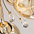 Металлическое основание потолочной люстры гальванизировано в цвет золота. Стеклянные плафоны гальванизированы в цвет шампань. Люстра декорирована прозрачным хрустальным стеклом.