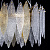 Металлическое основание подвесного светильника гальванизировано в цвет латуни. Люстра декорирована фактурными стеклянными пластинами прозрачными и цвета шампань.