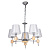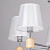 Металлическое основание светильника гальванизировано в цвет хрома. Светильник декорирован текстильными абажурами белого цвета с термостойким акрилом внутри. Подвесная люстра декорирована элементами из массива дерева натурального цвета.