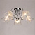Металлическое основание потолочной люстры гальванизировано в цвет хрома. Плафоны из прозрачного фактурного стекла окрашены в белый цвет у основания. Люстра декорирована прозрачным хрусталем в форме шара.