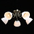 Основание светильника выполнено из металла и гальванизировано в цвет античной бронзы. Светильник декорирован стеклянными плафонами белого цвета.