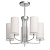 Металлическое основание люстры окрашено в цвет перламутрового серебра. Стеклянные плафоны окрашены в белый цвет.