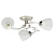 Основание светильника выполнено из сплава металла и окрашено в цвет перламутрового серебра. Отдельные элементы основания гальванизированы в цвет хрома. Светильник декорирован стеклянными матированными плафонами и прозрачным хрусталем.