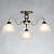 Металлическое основание гальванизировано в цвет античной бронзы. Отдельные элементы основания окрашены в черный цвет. Светильник декорирован стеклянными плафонами, отлитыми в форму. Плафоны матированы и окрашены вручную. На плафоны белым цветом нанесен рисунок в виде паутинки.