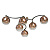 Металлическое основание потолочного светильника окрашено в черный цвет. Отдельные элементы гальванизированы в цвет бронзы. Стеклянные плафоны выдувные в форму градиентно гальванизированы в цвет меди. Градиент уменьшается от основания плафона в его краю.