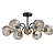 Металлическое основание подвесной люстры окрашено в черный цвет. Отдельные элементы основания гальванизированы в цвет античной бронзы. Светильник декорирован стеклянными фактурными плафонами цвета шампань.