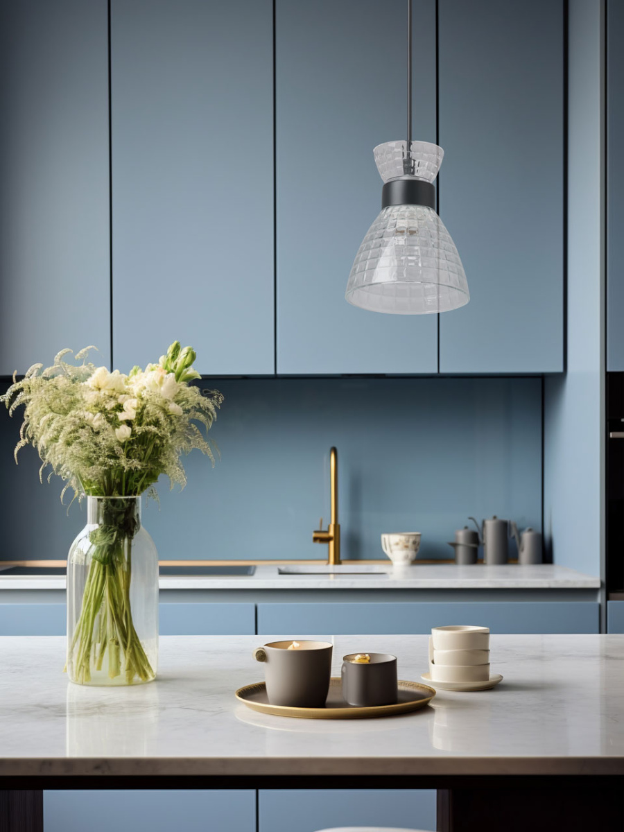 Металлическое основание подвеса окрашено в черный цвет. Прозрачный стеклянный плафон с геометричной фактурой отлит в сложную форму.