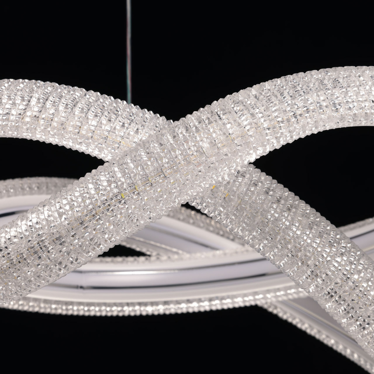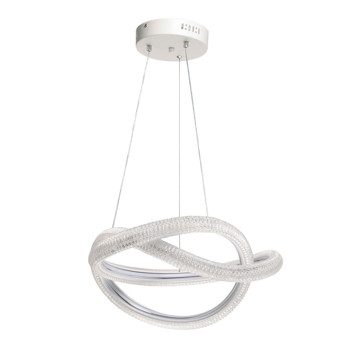 Металлическое основание светильника окрашено в белый цвет. Светодиодные источники света закрыты прозрачным фактурным акрилом.