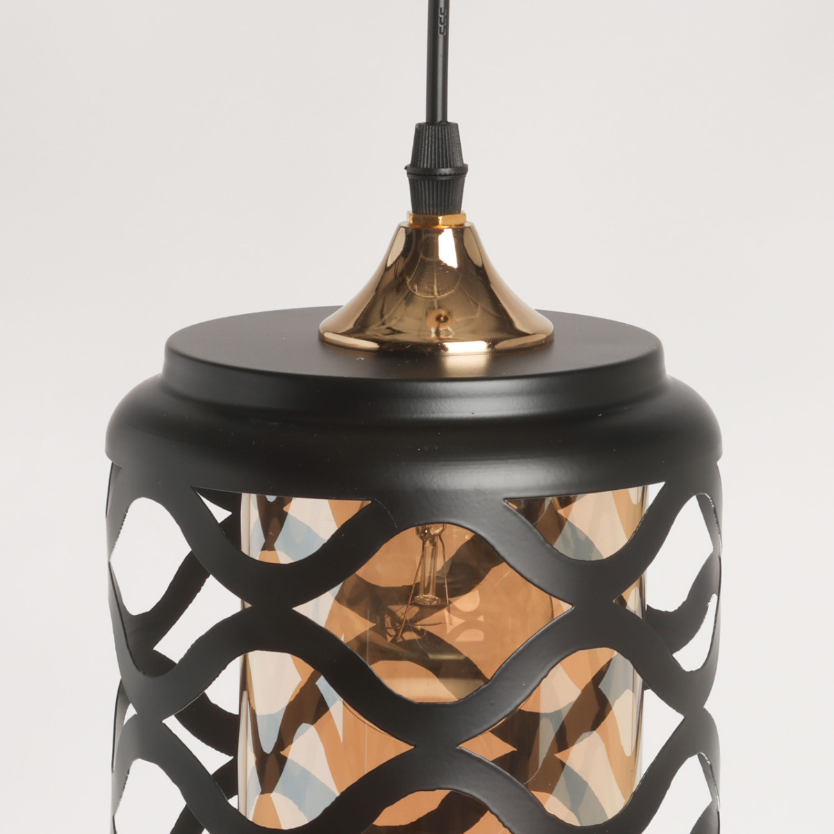 Потолочная чаша и держатель плафона выполнены из металла и гальванизированы в цвет золота. Металлический плфон окрашен в черный цвет. Внутренний стеклянный плафон гальванизирован в цвет шампань.
