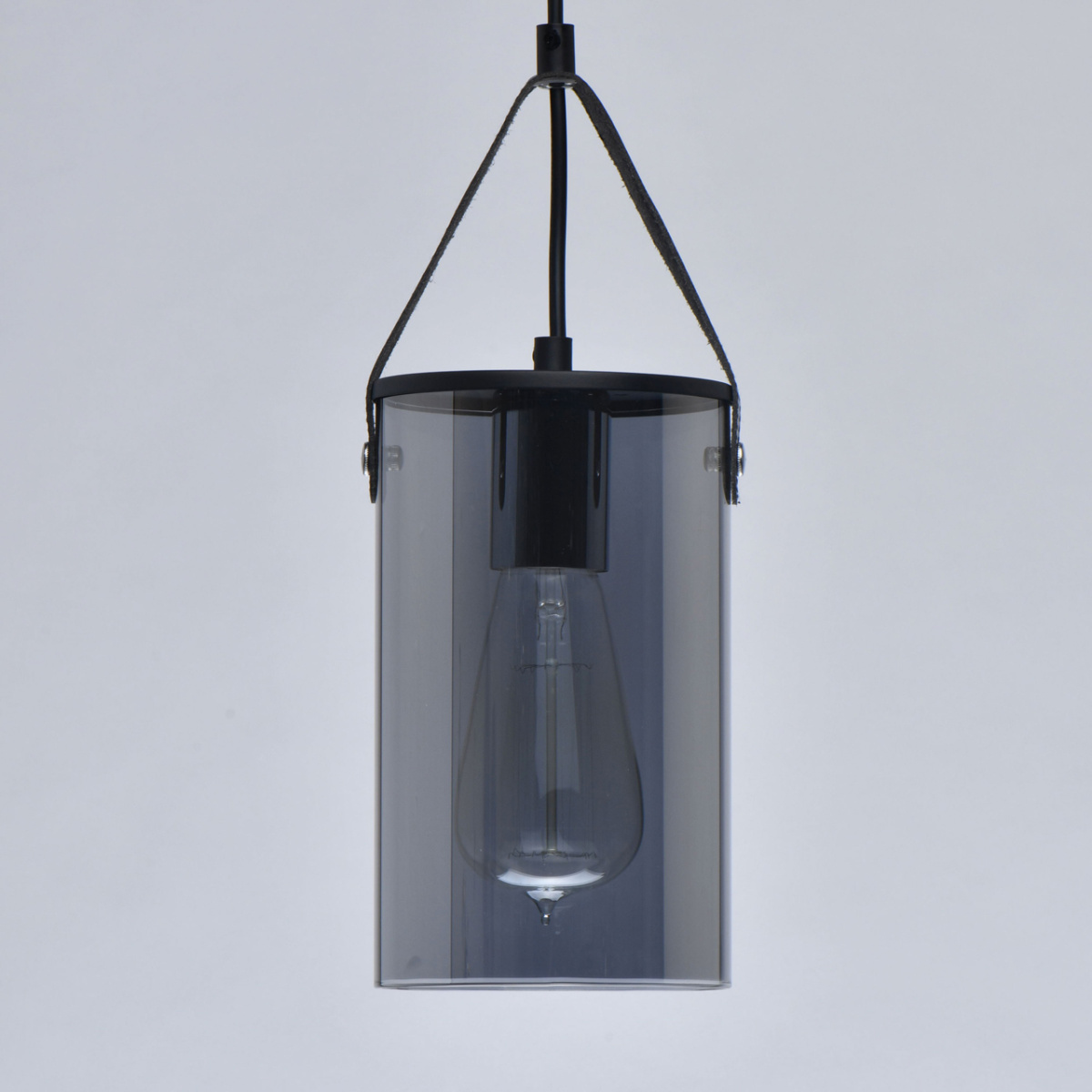 Основание светильника выполнено из металла и окрашено в черный цвет. Стеклянный плафон гальванизирован в цвет антрацита. Плафон крепится к основанию на кожаном ремешке черного цвета.