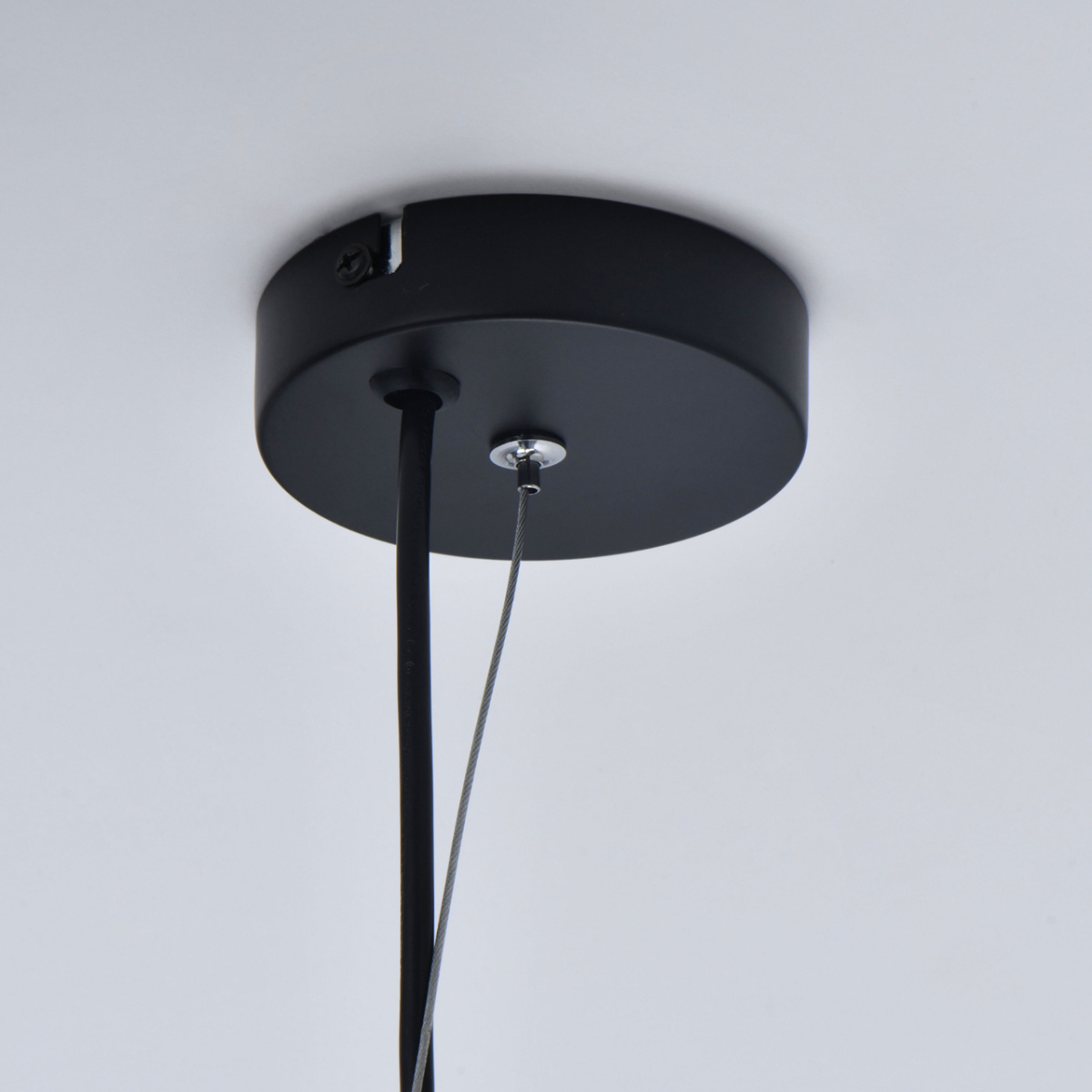 Основание светильника выполнено из металла и окрашено в черный цвет. Стеклянные плафоны гальванизированы в цвет антрацита. Плафоны крепятся к основанию на кожаных ремешках черного цвета.